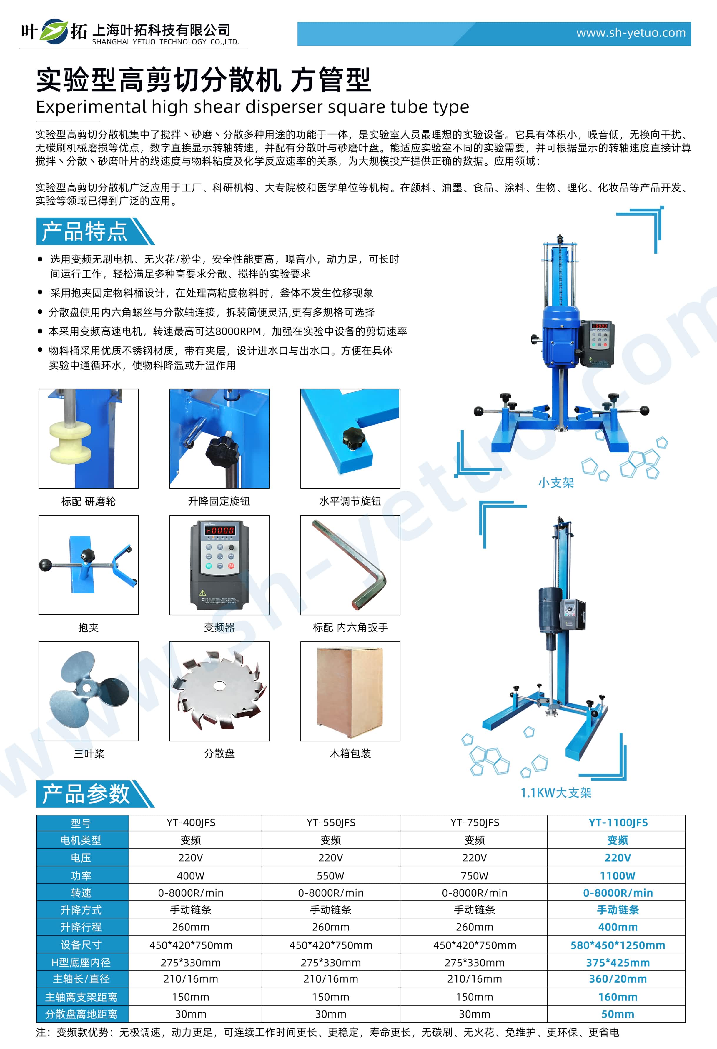 Product features of Yetuo YT-1100JFS experimental square tube disperser