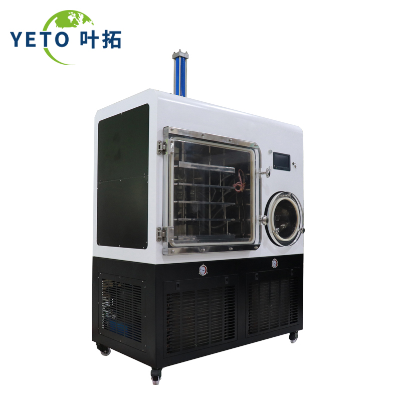 上海葉拓壓蓋凍干機-壓蓋凍干技術來源2022-10-15上海葉拓壓蓋凍干機也可以用為制藥冷凍干燥機,其主要作用是在解吸干燥結束之后產品干燥完畢,如果是盤裝產品,即可放入無菌空氣到大氣壓后, 打開箱門進行產品的出箱工作;需要注意的是干燥產品極易吸收空氣中的水分,因此盤裝產 品出箱時要對無菌室空氣的濕度進行控制,出箱后的產品應立即與大氣隔絕,以免影響凍干 產品的殘余水分含量。凍干產品由于在真空下進行干燥,因此受氧氣的影響很小,如果出箱放入空氣,空氣中 的氧