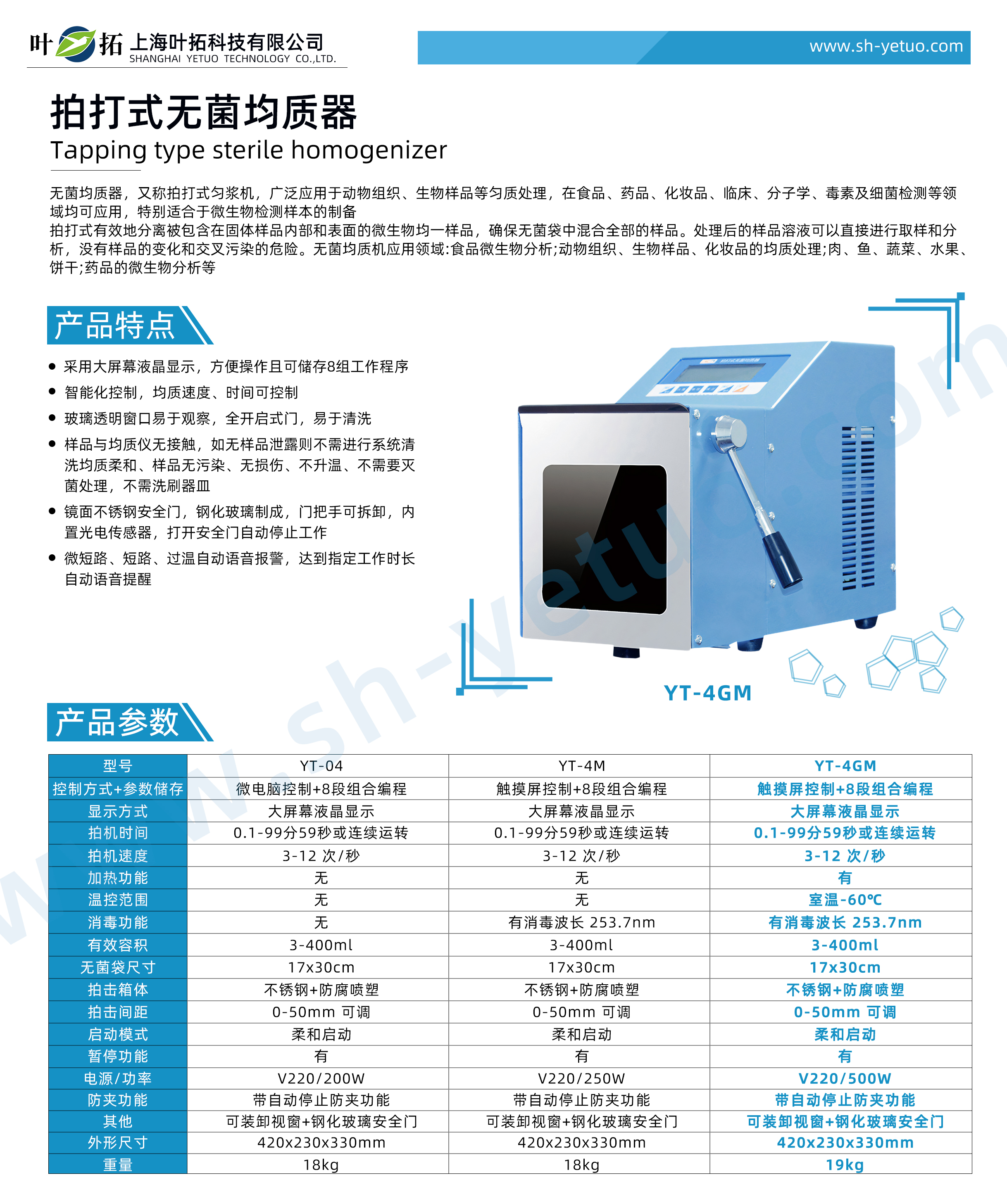 葉拓 YT-4GM 拍打式無菌均質器產品特點