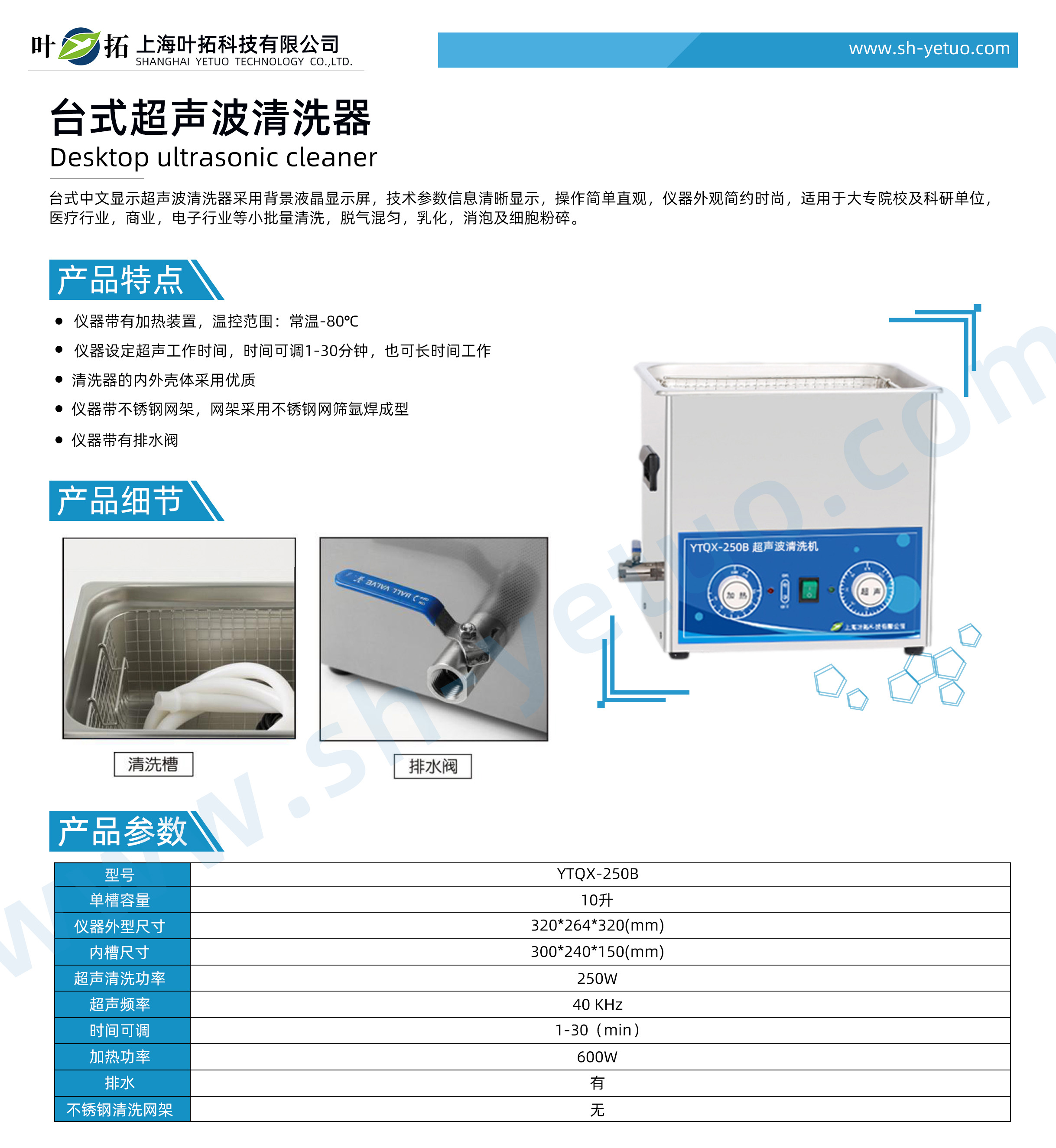 葉拓 YTQX-250B 臺式超聲波清洗機詳細參數