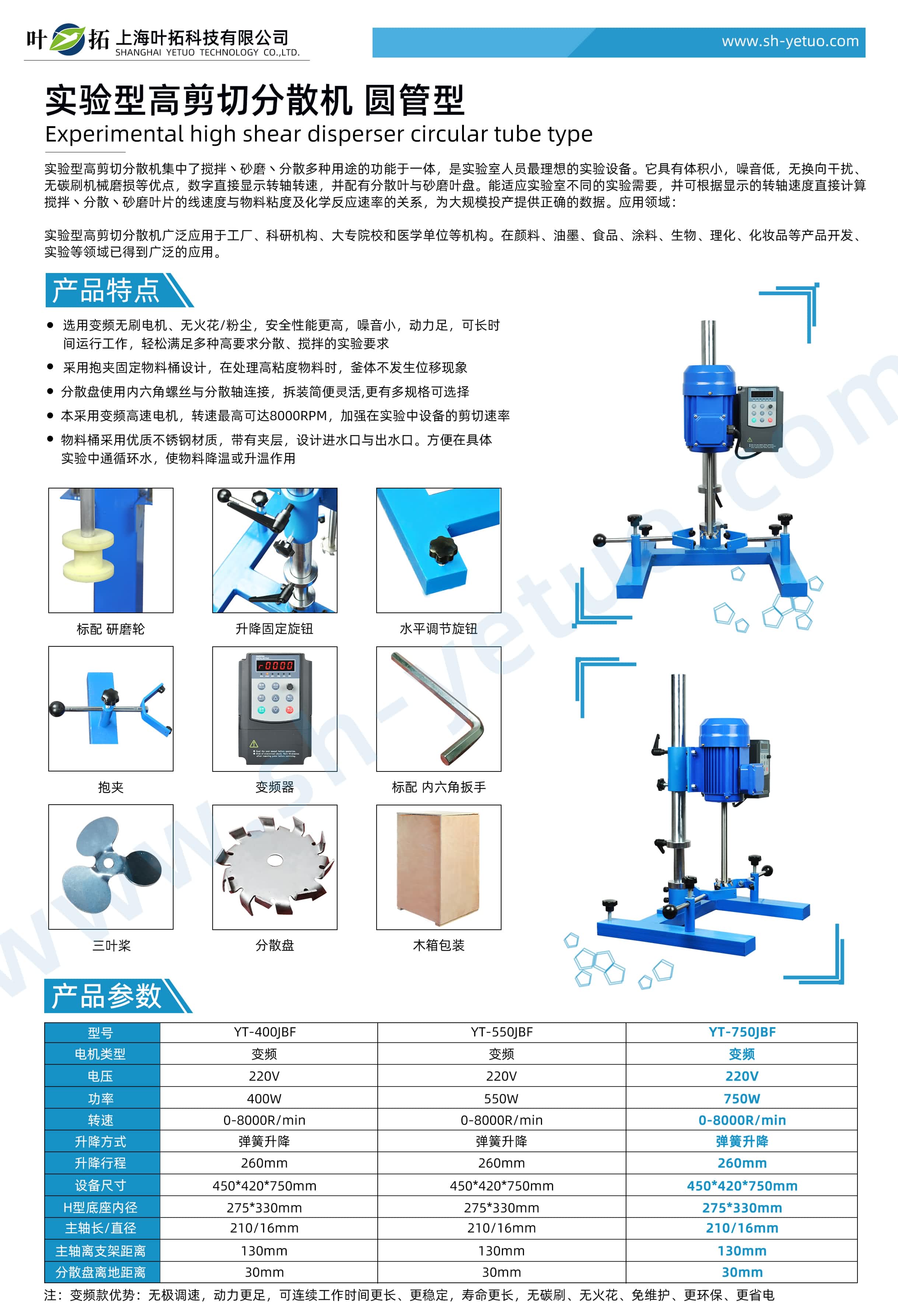 葉拓 YT-750JBF 實驗型圓管分散機詳細參數