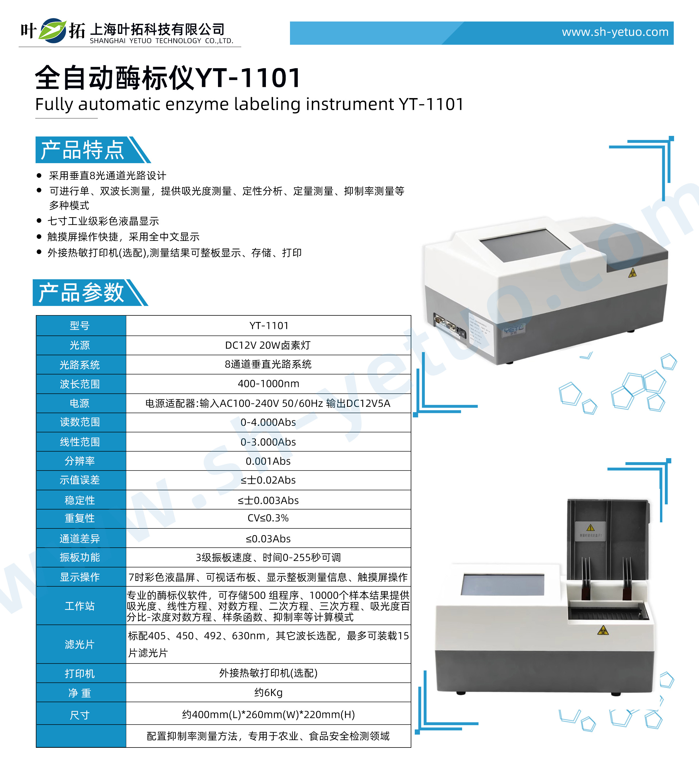 葉拓 YT-1101 全自動酶標分析儀詳細參數