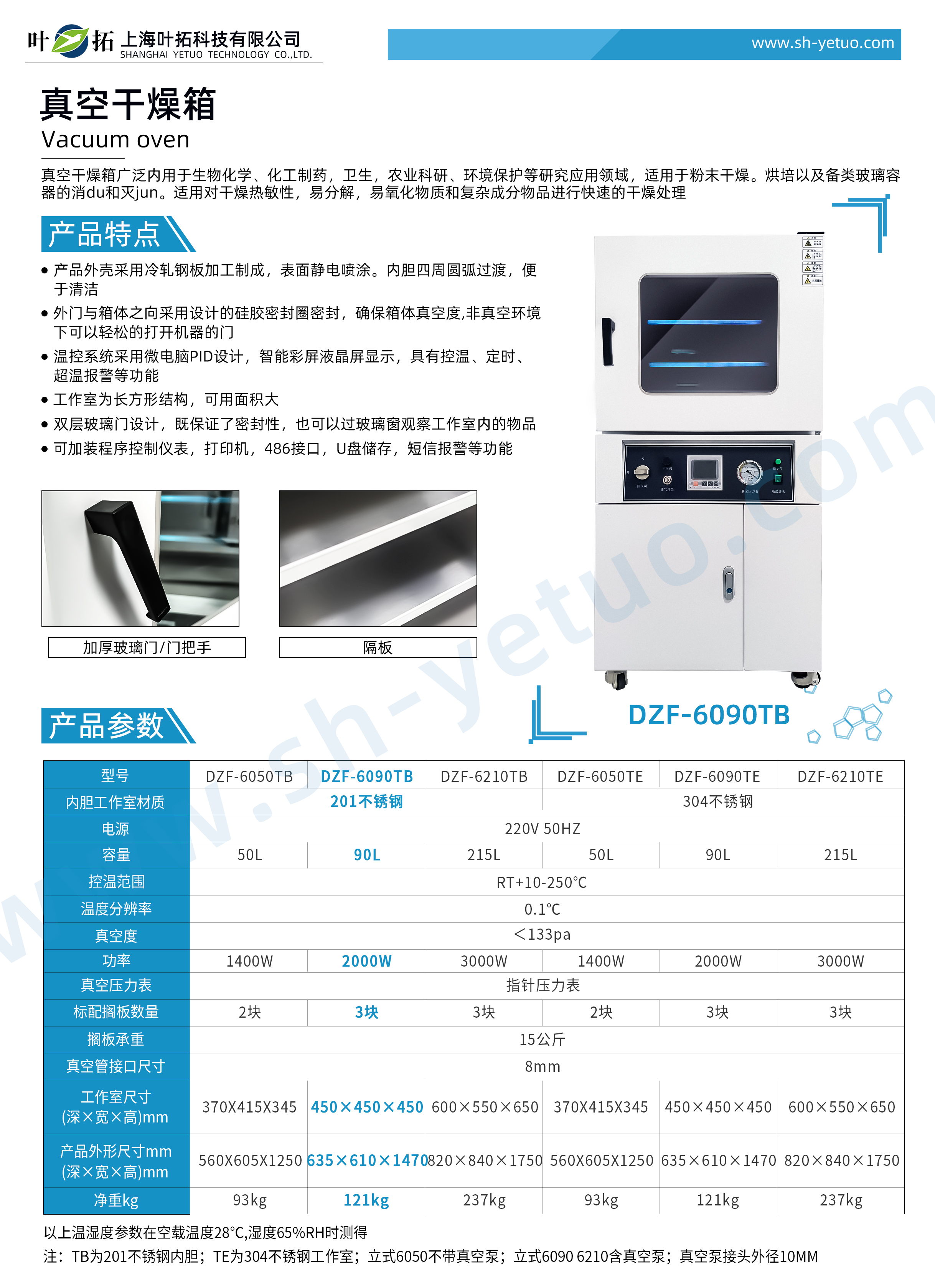 葉拓 DZF-6090TB 真空干燥箱詳細參數