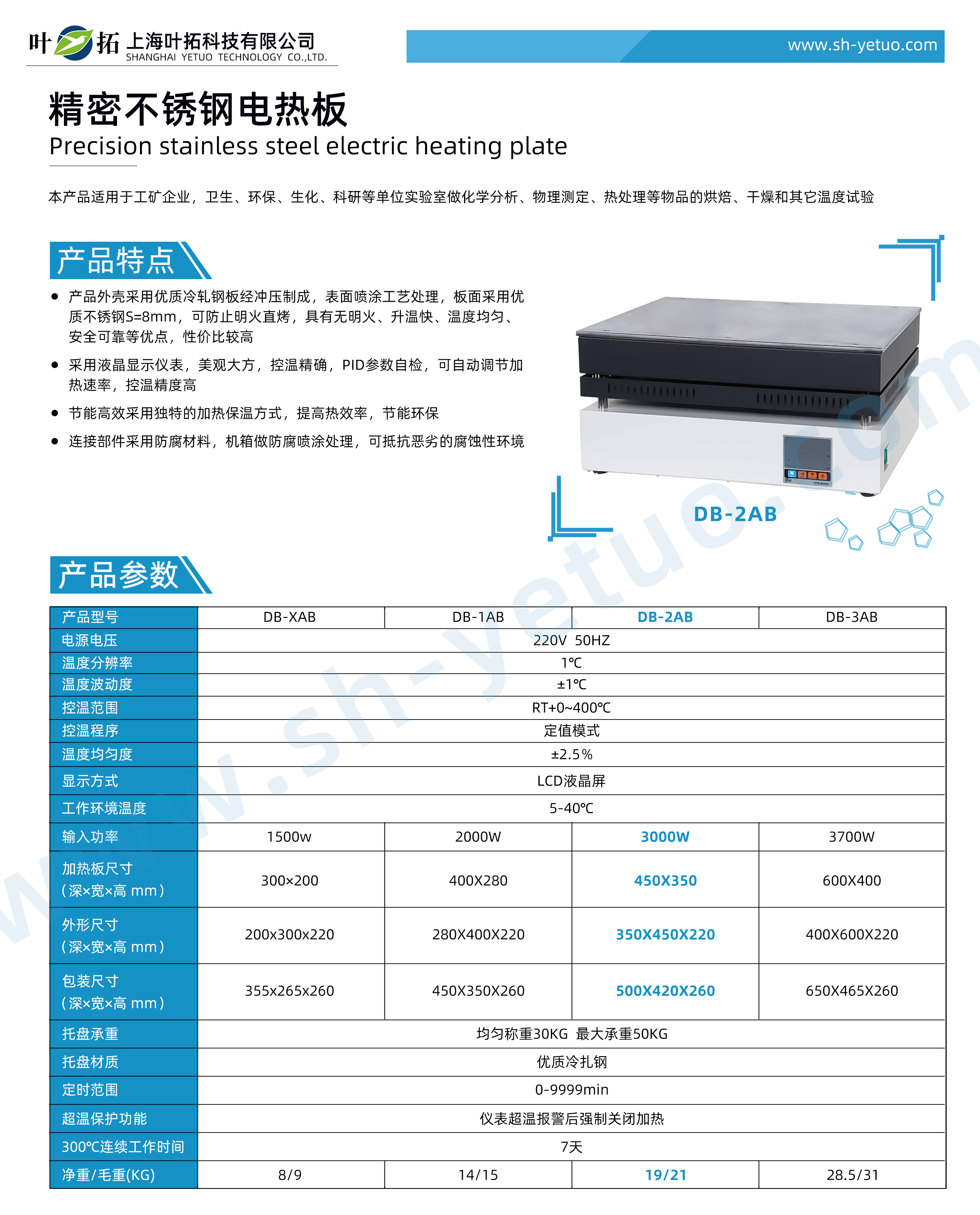 葉拓 DB-2AB 精密不銹鋼電熱板詳細參數
