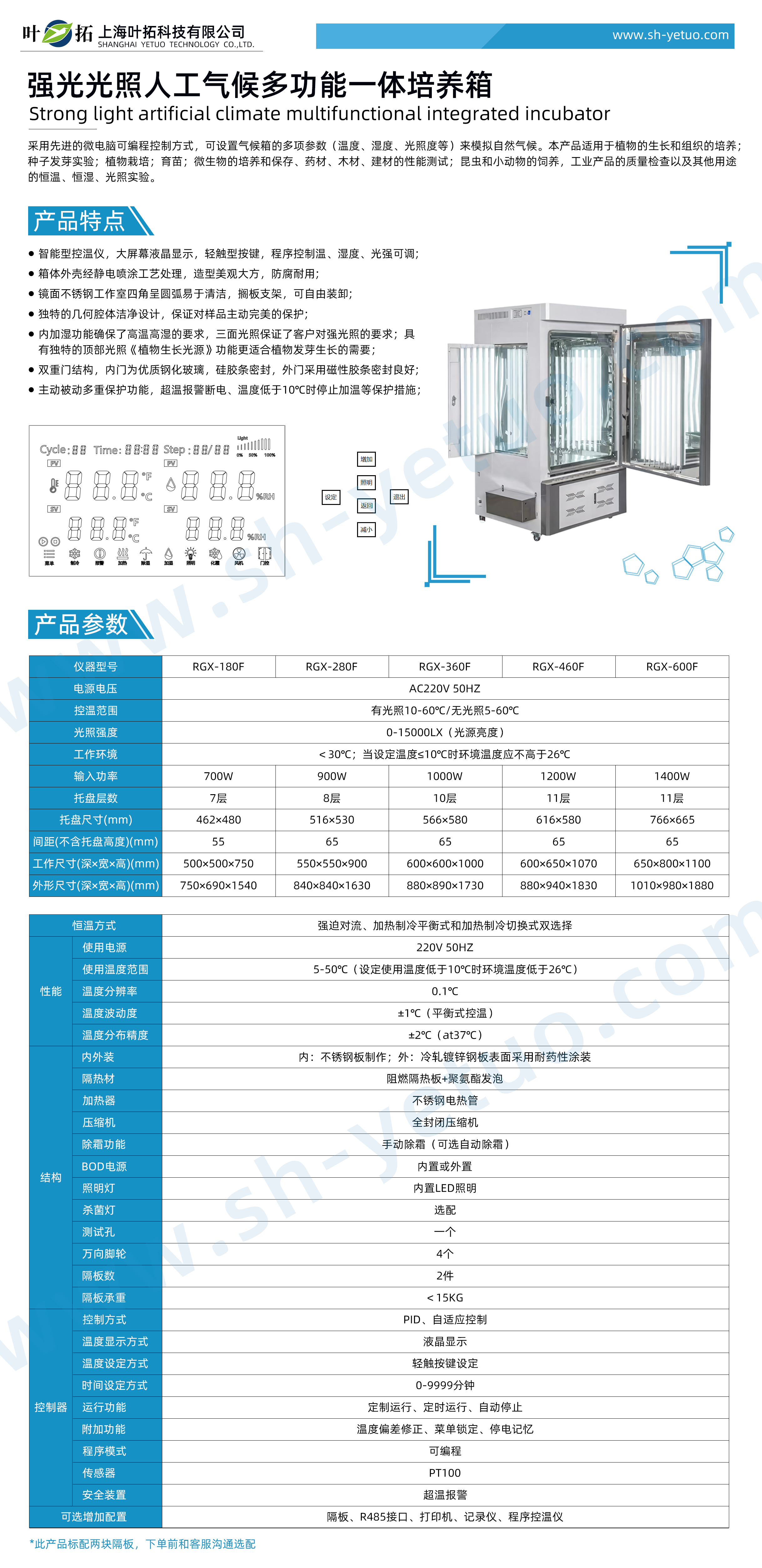 葉拓 RGX-180F 強光光照人工氣候多功能一體培養箱彩頁